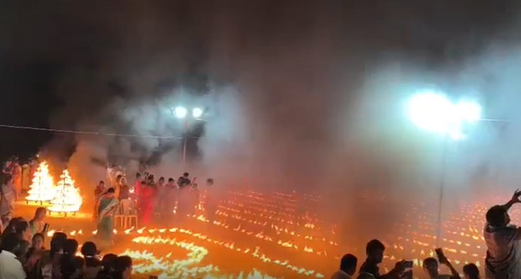 ఖమ్మం జిల్లాలోని రఘునాథపాలెం మండలం, చిమ్మపూడి గ్రామంలో శనివారం రాత్రి సామాజిక సమరసత వేదిక ఆధ్వర్యంలో నిర్వహించిన కార్తీక దీపోత్సవం ఆధ్యాత్మిక శోభను సంతరించుకుంది. పవిత్ర కార్తీక మాసాన్ని పురస్కరించుకుని, సమాజంలో సామరస్యాన్ని, ఐక్యతను పెంపొందించాలనే ఉద్దేశంతో ఈ ఉత్సవాన్ని అత్యంత వైభవంగా నిర్వహించారు. వేలాదిగా వెలిగిన దీపాల కాంతులతో ఆలయ ప్రాంగణం దేదీప్యమానంగా వెలిగింది. ఈ వేడుకకు పెద్ద సంఖ్యలో భక్తులు, ప్రజలు హాజరై, సామాజిక ఐక్యతకు ప్రతీకగా నిలిచిన ఈ ఆధ్యాత్మిక, సాంస్కృతిక కార్యక్రమంలో పాల్గొన్నారు.