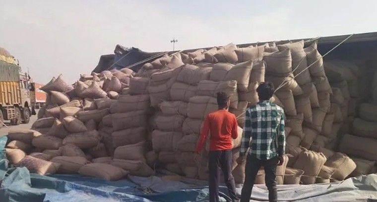సిరికొండ మండలం చీమన్పల్లి కొనుగోలు కేంద్రం నుంచి సేకరించిన ధాన్యాన్ని నిజామాబాద్కు (NZB) తరలిస్తుండగా ఈ దుర్ఘటన చోటుచేసుకుంది. లారీ బోల్తా పడటంతో అందులోని పంట మొత్తం రోడ్డుపై పడిపోయింది. దాదాపు 300 బస్తాలకు పైగా ధాన్యం చెల్లాచెదురుగా పడిపోవడంతో రైతులకు, వ్యాపారులకు గణనీయమైన నష్టం వాటిల్లింది. అయితే, అదృష్టవశాత్తూ ఈ ప్రమాదంలో లారీ డ్రైవర్ స్వల్ప గాయాలతో బయటపడినట్లు స్థానికులు పేర్కొన్నారు.