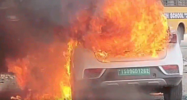 హైదరాబాద్లోని గాంధీ నగర్లో సోమవారం TS TS09 GD 1262 నంబర్ గల ఎలక్ట్రిక్ కారులో అకస్మాత్తుగా మంటలు చెలరేగాయి. స్థానికులు సమాచారం ఇవ్వడంతో అగ్నిమాపక సిబ్బంది వెంటనే చేరుకుని మంటలను అదుపులోకి తీసుకున్నారు. ట్రాఫిక్ పోలీసులు కూడా సంఘటనా స్థలానికి చేరుకుని ట్రాఫిక్ను నియంత్రించారు. ఈ ప్రమాదంలో ఎవరికీ ఎలాంటి ప్రాణనష్టం జరగలేదు, కేవలం వాహనానికి మాత్రమే నష్టం జరిగింది. మంటలు ఎలా చెలరేగాయనే దానిపై పోలీసులు దర్యాప్తు చేస్తున్నారు.