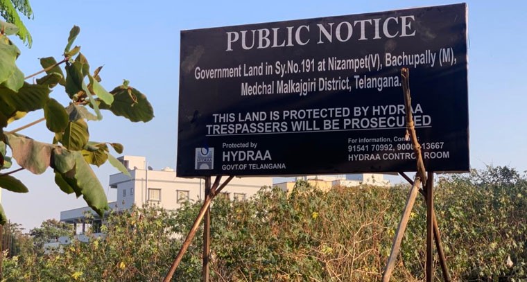 మేడ్చల్ - మల్కాజిగిరి జిల్లా బాచుపల్లి మండలం నిజాంపేట విలేజ్ సర్వే నంబరు 191లో 10 ఎకరాల ప్రభుత్వ భూమిని హైడ్రా గురువారం కాపాడింది. దీని విలువ రూ. 750 కోట్లకు పైగా ఉంటుందని అంచనా. ఇక్కడ ప్రభుత్వ భూమి కబ్జా జరుగుతుందని స్థానికుల నుంచి వచ్చిన ఫిర్యాదు మేరకు హైడ్రా క్షేత్రస్థాయిలో రెవెన్యూ అధికారులతో కలిసి విచారించింది. ఆక్రమణలను నిర్ధారించుకుంది. హైడ్రా కమిషనర్ శ్రీ ఏవీ రంగనాథ్ గారి ఆదేశాల మేరకు శాశ్వత నివాసాల జోలికి వెళ్లకుండా.. మిగతా షెడ్డులను, ప్రహరీలను తొలగించి.. 10 ఎకరాల భూమి చుట్టూ హైడ్రా ఫెన్సింగ్ వేసి బోర్డు లు ఏర్పాటు చేసింది.