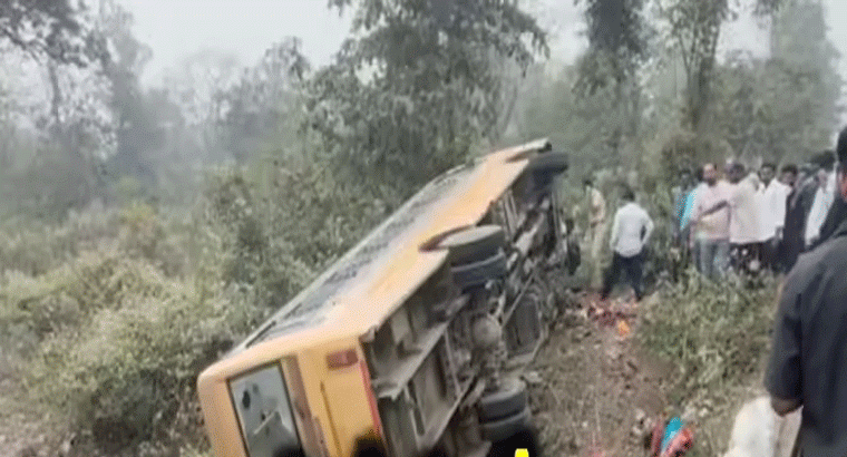 తెలంగాణలో ప్రైవేట్ స్కూల్ బస్సు బోల్తా