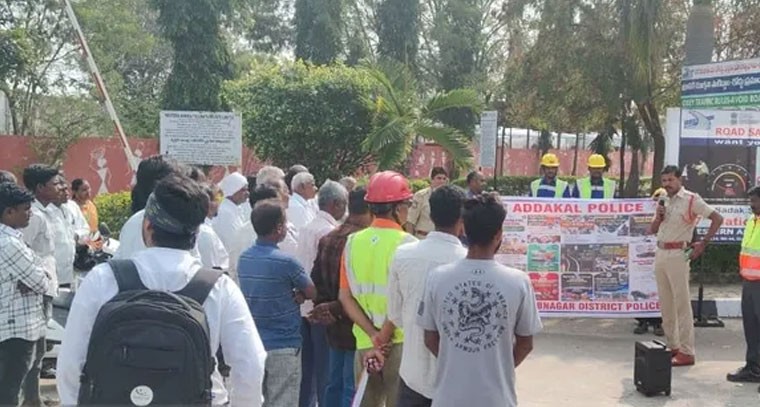 దేవరకద్ర నియోజకవర్గం అడ్డాకుల మండలం, 44వ జాతీయ రహదారి శాఖా పూర్ టోల్ ప్లాజా వద్ద రోడ్డు భద్రత వారోత్సవాల్లో భాగంగా వాహనదారులకు అవగాహన కల్పించారు. ఈ సందర్భంగా అడ్డాకుల ఎస్సై ఎం శ్రీనివాస్ మాట్లాడుతూ, జాతీయ రహదారి రోడ్డు ప్రమాదాల పట్ల వాహనదారులు, ప్రయాణికులు పూర్తి అప్రమత్తంగా ఉండాలని కోరారు. వాహనదారులు తప్పకుండా హెల్మెట్ ధరించాలని, సీటు బెల్టును పెట్టుకోవాలని, మద్యం తాగి వాహనాలు నడపవద్దని సూచించారు. డ్రంక్ అండ్ డ్రైవ్ లో పట్టుబడిన వారికి జరిమానాతో పాటు జైలు శిక్ష ఉంటుందని హెచ్చరించారు. ఈ కార్యక్రమంలో టోల్ ప్లాజా సిబ్బంది తదితరులు పాల్గొన్నారు.