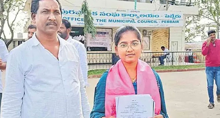TG: వనపర్తి జిల్లా పెబ్బేరు మండలంలో మరో వైద్య విద్యార్థిని ప్రజాసేవకు ముందుకొచ్చారు. ఇటీవల జరిగిన పంచాయతీ ఎన్నికల్లో ఏటిగడ్డ శాఖాపురం సర్పంచ్ స్థానానికి నిఖిత అనే MBBS విద్యార్థిని పోటీ చేసి గెలుపొందిన విషయం తెలిసిందే. తాజాగా పురపాలిక ఎన్నికల్లో పోటీకి మరో వైద్య విద్యార్థిని రంగంలోకి దిగారు. పెబ్బేరు మున్సిపాలిటీలో కౌన్సిలర్ పదవికి పవిత్ర అనే వైద్య విద్యార్థిని శుక్రవారం నామినేషన్ వేశారు. ఎస్సీ మహిళలకు రిజర్వ్ అయిన 4వ వార్డు నుంచి బీఆర్ఎస్ తరఫున నామినేషన్ పత్రాలు దాఖలు చేశారు.
