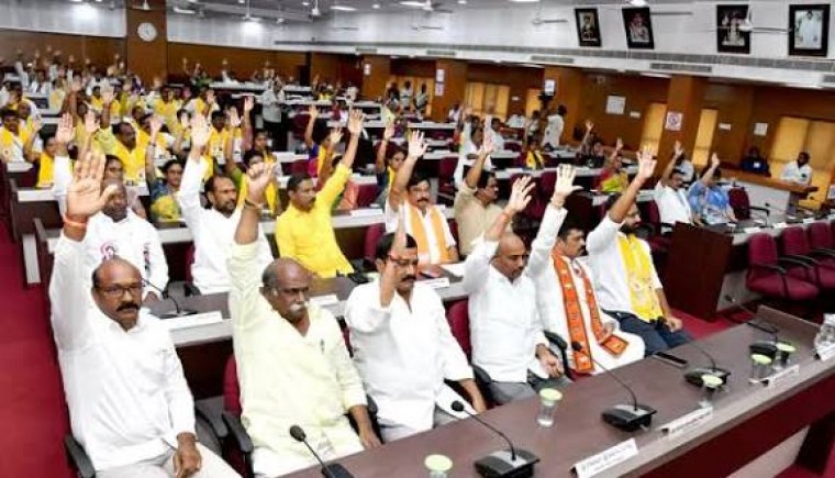విశాఖ నగరపాలక సంస్థ జీవీఎంసీలో రాజకీయ పరిణామాలు వేగంగా మారాయి. డిప్యూటీ మేయర్ జియ్యాని శ్రీధర్పై కూటమి టీడీపీ-జనసేన-బీజేపీ కార్పొరేటర్లు ప్రవేశపెట్టిన అవిశ్వాస తీర్మానం విజయవంతమైంది. ఈ పరిణామంతో కూటమి సభ్యులు సంబరాలు చేసుకున్నారు. డిప్యూటీ మేయర్ శ్రీధర్ అవినీతి, అరాచక పాలనకు చరమగీతం పాడామని వారు వ్యాఖ్యానించారు.అవిశ్వాస తీర్మానం నెగ్గిన అనంతరం కూటమి కార్పొరేటర్లు మీడియాతో మాట్లాడారు. గత నాలుగేళ్ల వైసీపీ పాలనలో విశాఖ నగరంలో అభివృద్ధి పూర్తిగా కుంటుపడిందని ఆరోపించారు. కనీసం వీధి దీపాలు వెలిగించలేని, తాగునీటి సమస్యలు పరిష్కరించలేని దుస్థితి నెలకొందని విమర్శించారు. తమ అవిశ్వాస తీర్మానానికి 74 మంది సభ్యులు మద్దతు తెలిపారని, ఇది విశాఖ ప్రజల విజయమని అన్నారు. కొందరు వైసీపీ కార్పొరేటర్లు కూడా తమకు న్యాయం జరగలేదనే భావనతో, అభివృద్ధి కాంక్షించి అవిశ్వాసానికి మద్దతు పలికారన్నారు.గత పాలనలో జరిగిన అవినీతికి, అభివృద్ధి రాహిత్యానికి ఈ అవిశ్వాస విజయంతో ముగింపు పలికామని కూటమి కార్పొరేటర్లు పేర్కొన్నారు. రాబోయే కొద్ది కాలంలోనే విశాఖ నగరాన్ని అభివృద్ధి పథంలో నడిపించి చూపిస్తామని ధీమా వ్యక్తం చేశారు. త్వరలోనే మేయర్, డిప్యూటీ మేయర్ పీఠాలను కూటమి కైవసం చేసుకుంటుందని, ప్రజలకు మెరుగైన పాలన అందిస్తామని వారు తెలిపారు. ఈ విజయంతో విశాఖపట్నం తెలుగుదేశం పార్టీకి కంచుకోట అని మరోసారి నిరూపితమైందని పలువురు కార్పొరేటర్లు అభిప్రాయపడ్డారు.