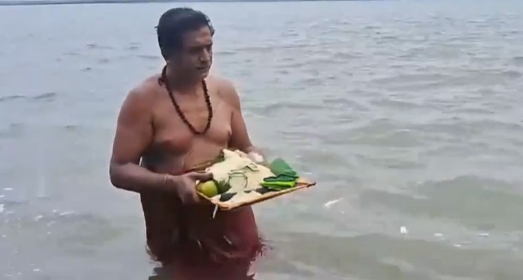 మహారాష్ట్ర, కర్ణాటకలో కురుస్తున్న భారీవర్షాలకు కృష్ణానదికి భారీగా వరద వచ్చి చేరుతోంది. శ్రీశైలం డ్యామ్ కు నీటిమట్టం పెరగడంతో కర్నూలు జిల్లాలోని సంగమేశ్వరాలయంలో వేపదారు శివలింగాన్ని కృష్ణానది జలాలు తాకాయి. దీంతో స్వామివారికి అర్చకులు ప్రత్యేక పూజలు నిర్వహించారు. సంగమేశ్వర ఆలయం ప్రతి సంవత్సరం 8 నెలలు నీటి గర్భంలోనే ఉంటుంది. 4 నెలలు మాత్రమే భక్తులు సర్వేశ్వరుడిని దర్శించుకోవచ్చు.జలాశయం పరిధిలోని సంగమేశ్వర ఆలయం నంద్యాల జిల్లా కొత్తపల్లి మండలం ఉంది. వరదల కారణంగా ఏటా సంగమేశ్వరుడి ఆలయం నీట మునుగతున్నప్పటికి సాధారణ సమయంలో భక్తులు పెద్ద సంఖ్యలో ఆలయాన్ని దర్శిస్తుంటారు.