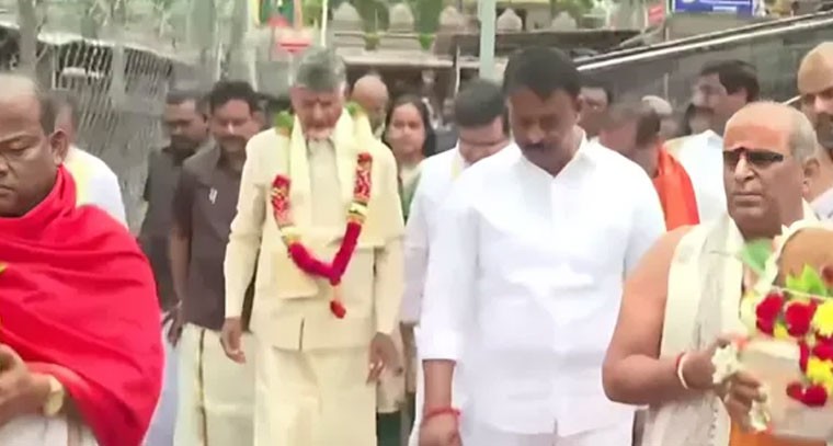 ముఖ్యమంత్రి చంద్రబాబు మంగళవారం శ్రీశైలంలో భ్రమరాంబ మల్లికార్జున స్వామివార్ల దర్శించుకున్నారు. ఆయనకు ఆలయ అర్చకులు సంప్రదాయపూర్వకంగా పూర్ణకుంభంతో స్వాగతం పలికారు. ముందు రత్నగర్భ గణపతిని, అనంతరం మల్లికార్జున స్వామి, భ్రమరాంబ అమ్మవారిని దర్శించుకుని అర్చనలో పాల్గొన్నారు. వేదపండితులు వేదాశీర్వచనం చేసి తీర్థప్రసాదాలు అందజేశారు. పలువురు మంత్రులు, అధికారులు ఈ సందర్భంగా పాల్గొన్నారు.