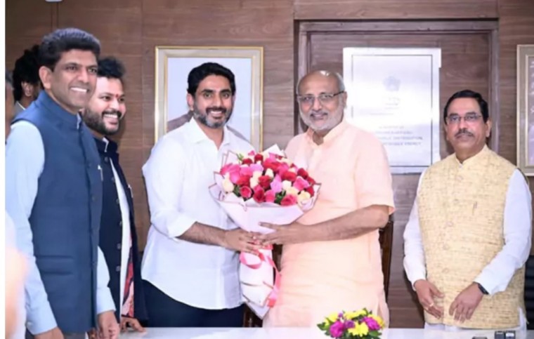 దేశ రాజధాని ఢిల్లీ పర్యటనలో ఉన్న ఆంధ్రప్రదేశ్ విద్యా, ఐటీ శాఖల మంత్రి నారా లోకేశ్ పలువురు కేంద్ర మంత్రులను కలిసి రాష్ట్రానికి సంబంధించిన వివిధ ప్రాజెక్టులు, అభివృద్ధికి సహకరించాలని కోరుతూ వినతి పత్రాలను సమర్పిస్తున్నారు. ఈ క్రమంలోనే ఎన్డీయే ఉపరాష్ట్రపతి అభ్యర్థిగా ఎంపికైన సీపీ రాధాకృష్ణన్ను నిన్న రాత్రి మంత్రి నారా లోకేష్ ఢిల్లీలో మర్యాదపూర్వకంగా కలిశారు. బొకే అందజేసి, దుశ్శాలువాతో సత్కరించారు.ఉపరాష్ట్రపతి అభ్యర్థిగా ఎంపికైనందుకు తెలుగుదేశం పార్టీ తరపున శుభాకాంక్షలు తెలిపారు. మహారాష్ట్రతో పాటు పలు రాష్ట్రాలకు గవర్నర్గా పనిచేసిన అనుభవం రాబోయే రోజుల్లో దేశానికి సమర్థవంతమైన సేవలు అందించడానికి ఉపకరిస్తుందని అన్నారు. క్రమశిక్షణ, పట్టుదలకు మారుపేరైన రాధాకృష్ణన్ తమలాంటి కొత్త తరానికి ఆదర్శంగా నిలుస్తారని పేర్కొన్నారు.మంత్రి లోకేశ్ వెంట ఆంధ్రప్రదేశ్కు చెందిన కేంద్ర మంత్రులు కె. రామ్మోహన్ నాయుడు, పెమ్మసాని చంద్రశేఖర్, పలువురు ఎంపీలు పాల్గొన్నారు. కాగా, ఇందుకు సంబంధించిన ఫోటోలను నారా లోకేశ్ తన సోషల్ మీడియా ఖాతా ఎక్స్లో పోస్ట్ చేశారు.