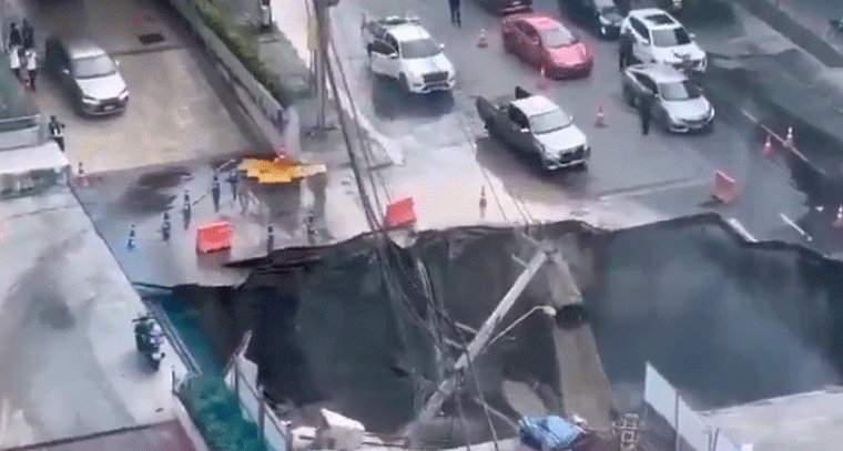 థాయిలాండ్ రాజధాని బ్యాంకాక్లో ఓ ఆసుపత్రి ఎదుట రోడ్డుపై భారీ గుంత పడటంతో ట్రాఫిక్కు తీవ్ర అంతరాయం ఏర్పడింది. సుమారు 30 మీటర్ల పొడవు, 15 మీటర్ల లోతులో రోడ్ ఒక్కసారిగా కుంగిపోయింది. సబ్వే టన్నెల్ నిర్మాణం కారణమై ఉండవచ్చని అధికారులు అనుమానిస్తున్నారు. గాయాలు ఎవరికి కాకపోయినా రోడ్లు, పైపులు, విద్యుత్ లైన్లు దెబ్బతిన్నాయి. ఘటనపై విచారణకు అధికారులు ఆదేశాలు జారీ చేశారు.