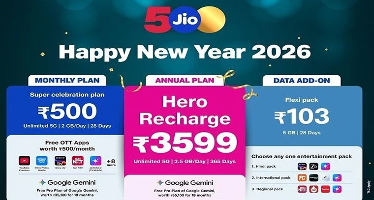 దేశీయ టెలికాం దిగ్గజం రిలయన్స్ జియో నూతన సంవత్సరాన్ని పురస్కరించుకుని తన వినియోగదారులకు బారీ కానుకలను ప్రకటించింది. ప్రతి ఏటా న్యూ ఇయర్ సందర్భంగా ఆకర్షణీయమైన ఆఫర్లను ప్రవేశపెట్టే జియో, ఈసారి టెక్నాలజీ ప్రియులను మరియు అధిక డేటా వినియోగదారులను దృష్టిలో ఉంచుకుని సరికొత్త ప్లాన్స్ను తీసుకువచ్చింది. కేవలం డేటా మరియు కాలింగ్ ప్రయోజనాలే కాకుండా, ప్రస్తుత ట్రెండ్కు అనుగుణంగా ఆర్టిఫిషియల్ ఇంటెలిజెన్స్ (AI) సేవలను కూడా ఉచితంగా అందించడం ఈ కొత్త ప్లాన్ల ప్రత్యేకతగా చెప్పుకోవచ్చు.