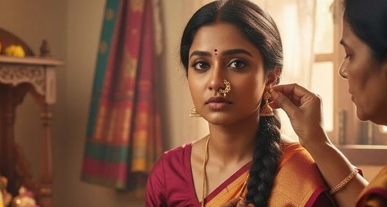 మన హిందూ సంప్రదాయాల ప్రకారం ముక్కుపుడక ధరించడం అనేది కేవలం అలంకరణ మాత్రమే కాదు, అది ఒక పవిత్రమైన ఆచారం. సాధారణంగా బాల్య దశ దాటిన తర్వాత మేనమామ చేతుల మీదుగా ముక్కు కుట్టించడం అనేది తరతరాలుగా వస్తున్న ఆచారం. ఈ కార్యక్రమం మేనమామ సమక్షంలోనే జరగాలని పెద్దలు చెబుతుంటారు. మేనమామ అంటే తల్లి తరపు రక్షణకు, ప్రేమకు చిహ్నంగా భావిస్తారు కాబట్టి, ఆయన ఇచ్చే ఈ బహుమతికి ఎంతో ప్రాముఖ్యత ఉంటుంది.