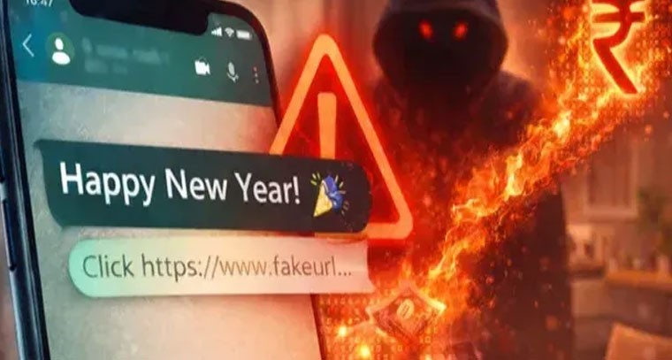 న్యూ ఇయర్ వేళ సైబర్ నేరగాళ్లు వాట్సాప్ ద్వారా నకిలీ సందేశాలు పంపుతున్నారు. 'హ్యాపీ న్యూ ఇయర్ 2026' వంటి సందేశాలతో వచ్చే లింక్‌లపై క్లిక్ చేస్తే లేదా APK ఫైళ్లను డౌన్‌లోడ్ చేసుకుంటే ఫోన్, బ్యాంక్ ఖాతాలు ప్రమాదంలో పడతాయి. ఈ APK ఫైళ్లు మీ వ్యక్తిగత, ఆర్థిక డేటాను దొంగిలించడమే కాకుండా, OTPలను చదివి, బ్యాంక్ లావాదేవీలు నిర్వహించి, మీ వాట్సాప్ ఖాతాను దుర్వినియోగం చేస్తాయి. పొరపాటున క్లిక్ చేస్తే, వెంటనే యాప్‌ను తొలగించి, ఇంటర్నెట్ డిస్‌కనెక్ట్ చేసి, పాస్‌వర్డ్‌లు మార్చుకుని, బ్యాంకుకు, సైబర్ క్రైమ్ అధికారులకు ఫిర్యాదు చేయాలి.
