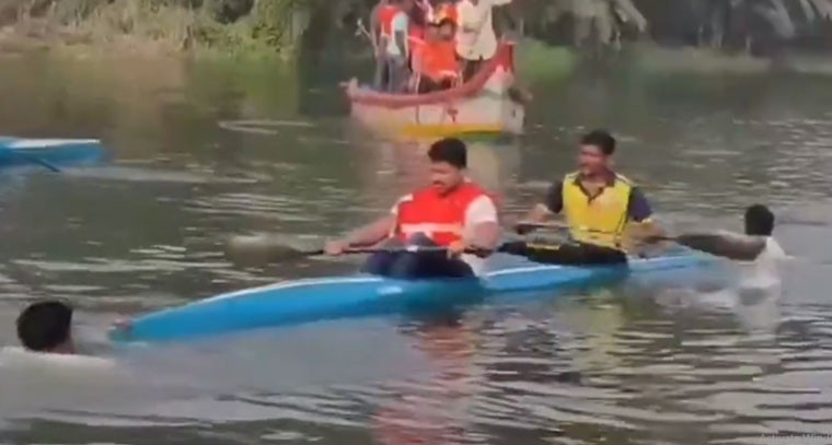 AP: అంబేడ్కర్ కోనసీమ జిల్లా ఆత్రేయపురం మండలం పులిదిండి వద్ద సంక్రాంతి సంబరాల్లో భాగంగా నిర్వహించిన పడవ పోటీల ట్రైల్ రన్లో అపశృతి చోటుచేసుకుంది. పోటీలను ప్రారంభించిన జిల్లా కలెక్టర్ మహేశ్ కుమార్, ప్రయాణిస్తున్న పడవ అదుపు తప్పడంతో ప్రమాదవశాత్తు కాలువలో పడిపోయారు. వెంటనే అప్రమత్తమైన స్విమ్మర్లు కలెక్టర్ను సురక్షితంగా బయటకు తీసి వేరే పడవలోకి ఎక్కించారు.