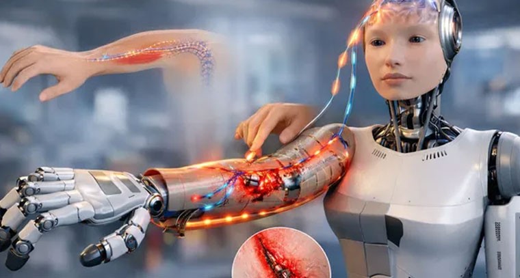 హాంకాంగ్ నగర విశ్వవిద్యాలయ పరిశోధకులు మానవ నాడీ వ్యవస్థ స్ఫూర్తితో 'న్యూరోమార్ఫిక్ ఇ-స్కిన్' అనే కృత్రిమ చర్మాన్ని అభివృద్ధి చేశారు. ఇది రోబోలు నొప్పిని గ్రహించినప్పుడు మాస్టర్ సాఫ్ట్వేర్ ఆదేశం కోసం వేచి ఉండకుండా, ప్రమాదాన్ని గుర్తించి వెంటనే తమను తాము రక్షించుకునేలా చేస్తుంది. ఈ ఆవిష్కరణ ఫ్యాక్టరీ ప్రమాదాలను తగ్గించడమే కాకుండా, భవిష్యత్తులో యుద్ధాలు, రెస్క్యూ ఆపరేషన్లలో రోబోల సామర్థ్యాన్ని పెంచుతుంది.