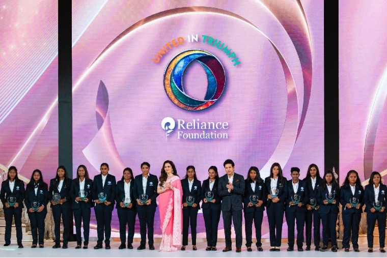 రిలయన్స్ ఫౌండేషన్ ఛైర్పర్సన్ నీతా అంబానీ చారిత్రక విజయం సాధించిన భారత అంధ మహిళల క్రికెట్ జట్టుకు భారీ నజరానా ప్రకటించారు. తొలిసారి జరిగిన అంధుల టీ20 ప్రపంచకప్ను గెలుచుకున్న జట్టుకు ఫౌండేషన్ తరఫున రూ.5 కోట్ల ప్రోత్సాహకాన్ని అందజేశారు. వారి అద్భుతమైన స్ఫూర్తిని, పట్టుదలను కొనియాడారు.ముంబైలో 'యునైటెడ్ ఇన్ ట్రయంఫ్' పేరుతో నిర్వహించిన ఈ ప్రత్యేక కార్యక్రమంలో నీతా అంబానీ స్వయంగా జట్టుకు రూ.5 కోట్ల చెక్కును అందించారు. ఈ వేదికపై మూడు ప్రపంచకప్ విజేత జట్లను ఒకేచోట సత్కరించడం విశేషం. అంధ మహిళల జట్టు కెప్టెన్ దీపికతో పాటు, టీ20 ప్రపంచకప్ 2024 గెలిచిన పురుషుల జట్టు కెప్టెన్ రోహిత్ శర్మ, వన్డే ప్రపంచకప్ 2025 విజేతగా నిలిచిన మహిళల జట్టు కెప్టెన్ హర్మన్ప్రీత్ కౌర్లను ఘనంగా సన్మానించారు.ఈ సందర్భంగా నీతా అంబానీ మాట్లాడుతూ భావోద్వేగానికి గురయ్యారు. "నూతన సంవత్సరాన్ని ఒక ప్రత్యేకమైన సందర్భంతో ప్రారంభిస్తున్నాం. మూడు భారత క్రికెట్ జట్లు ఒకే గూటి కిందకు రావడం చాలా ఆనందంగా ఉంది. ప్రతి భారతీయుడి తరపున వారికి ధన్యవాదాలు తెలుపుతూ, వారి విజయాలను వేడుకగా జరుపుకుంటున్నాం" అని ఆమె అన్నారు.ఈ కార్యక్రమానికి రిలయన్స్ ఇండస్ట్రీస్ అధినేత ముకేశ్ అంబానీ, బాలీవుడ్ దిగ్గజం అమితాబ్ బచ్చన్, క్రికెట్ ఐకాన్ సచిన్ టెండూల్కర్, ఐసీసీ ఛైర్మన్ జై షాతో పాటు పలువురు సినీ, క్రీడా ప్రముఖులు హాజరయ్యారు. తమకు అండగా నిలిచినందుకు నీతా అంబానీకి అంధ మహిళా క్రికెటర్లు కృతజ్ఞతలు తెలిపారు.