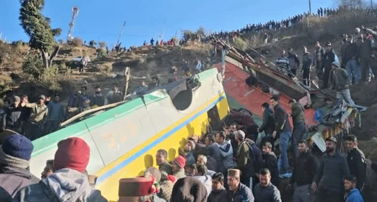 బస్సు లోయలో పడిన ఘోర ప్రమాదం – 12 మృతి, 35 గాయపడారు హిమాచల్ ప్రదేశ్‌లో శుక్రవారం ఘోర రోడ్డు ప్రమాదం సంభవించింది. ప్రైవేట్ ప్రయాణికుల బస్సు 400 మీటర్ల లోతైన లోయలో పడి 12 మంది ప్రాణాలు కోల్పోయారు, మరో 35 మంది గాయపడ్డారు.సిర్మా జిల్లాలోని హరిపుర్ధార్ ప్రాంతంలో ఈ ప్రమాదం జరిగింది. బస్సు ఏటవాలుగా ఉన్న సూటి రోడ్డుపై నుంచి జారిపోవడంతో ఈ ఘటన చోటుచేసుకుంది. బస్సు సోలన్ నుండి రాజ్‌ఘడ్, హరిపుర్ధార్ మార్గం ద్వారా కుప్వీకి వెళ్తోంది.ప్రమాద సమయంలో బస్సులో 50 మందికి పైగా ప్రయాణికులు ఉన్నారు. ప్రాథమిక నివేదికల ప్రకారం, ఏటవాలు మలుపు దిగుతున్నప్పుడు డ్రైవర్ బస్సుపై నియంత్రణ కోల్పోయినట్లు ప్రత్యక్ష సాక్షులు తెలిపారు. గాయపడినవారిని సమీపంలోని హరిపుర్ధార్ ప్రభుత్వ ఆస్పత్రికి తరలించారు.హిమాచల్ ప్రదేశ్ ముఖ్యమంత్రి సుఖ్విందర్ సింగ్ సుఖు ఈ ప్రమాదంపై విచారం వ్యక్తం చేశారు. అలాగే, ప్రధానమంత్రి కార్యాలయం కూడా అధికారిక ప్రకటన విడుదల చేసి మృతుల కుటుంబాలకు ఒక్కోరికి రూ. 2 లక్షల చొప్పున, గాయపడిన వారికి రూ. 50,000 చొప్పున పింఛను (పరిహారం) అందజేయనున్నట్లు తెలిపారు.