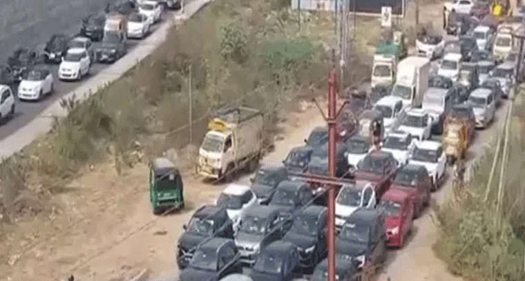 సంక్రాంతి పండుగ సందర్భంగా సొంత గ్రామాలకు వెళ్తున్న ప్రజల రద్దీతో విజయవాడ-హైదరాబాద్ జాతీయ రహదారిపై వాహనాలు బారులు తీరాయి. నందిగామ వై జంక్షన్ వద్ద అండర్పాస్ వంతెనకు అప్రోచ్ రోడ్డు నిర్మాణ పనులు పూర్తి కాకపోవడంతో, సర్వీస్ రోడ్డుపై గుంతల్లో వాహనాల రాకపోకలు నిలిచిపోయి ట్రాఫిక్ ఇబ్బందులు తలెత్తుతున్నాయి. దీని ఫలితంగా కిలోమీటర్ల మేర ట్రాఫిక్ జామ్ ఏర్పడింది.