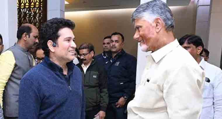 ఢిల్లీ ఎయిర్ పోర్టులో చంద్రబాబుని కలిసిన సచిన్
