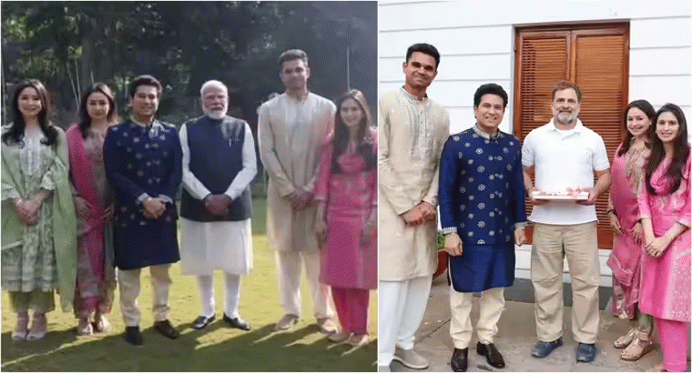 న్యూఢిల్లీలో కాంగ్రెస్ నేత రాహుల్ గాంధీని సచిన్ తన కుటుంబంతో కలిసి కలిసి, వివాహ ఆహ్వాన పత్రికను అందజేశారు. ఈ సందర్భంగా తీసుకున్న ఫోటోను సోషల్ మీడియాలో పంచుకున్న సచిన్, “రాహుల్ గాంధీజీని కలిసి అర్జున్–సానియా పెళ్లికి ఆహ్వానించాం” అని పేర్కొన్నారు.