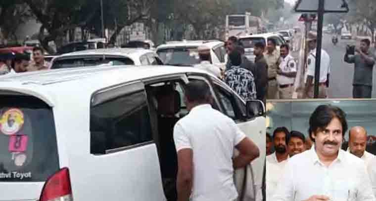 ఉప ముఖ్యమంత్రి పవన్ కల్యాణ్ కాన్వాయ్కు ఈ ఉదయం స్వల్ప ప్రమాదం జరిగింది. విశాఖలోని సిరిపురం నుంచి పెద్ద వాల్తేరు వైపు వెళ్తుండగా... త్రీ టౌన్ పోలీస్ స్టేషన్ సమీపంలో కాన్వాయ్లోని ఒక వాహనం సడన్ బ్రేక్ వేయడంతో, వెనుక వచ్చిన వాహనం బలంగా ఢీకొట్టింది. ఈ ఘటనలో వాహనం ముందు భాగం స్వల్పంగా దెబ్బతింది. ప్రమాద సమయంలో వాహనంలో పవన్ కల్యాణ్ లేరు. రాడిసన్ బ్లూ హోటల్ లో ఉన్న పవన్ ను పికప్ చేసుకోవడానికి వెళుతుండగా కాన్వాయ్ ప్రమాదానికి గురయింది. ఈ ప్రమాదంలో ఎవరికీ ఎలాంటి గాయాలు కాకపోవడంతో అధికారులు, భద్రతా సిబ్బంది ఊపిరి పీల్చుకున్నారు. ప్రమాదం గురించి సమాచారం అందుకున్న వెంటనే పోలీసులు ఘటనా స్థలానికి చేరుకున్నారు. దర్యాప్తు చేపట్టారు.