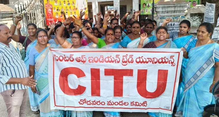 విజయవాడలో అంగన్వాడీల అక్రమ అరెస్టులకు నిరసనగా, మంగళవారం చోడవరంలో ఏపీ అంగన్వాడీ వర్కర్స్ యూనియన్ ఆధ్వర్యంలో నిరసన ర్యాలీ, మానవహారం చేపట్టారు. ఈ సందర్భంగా సిఐటియు జిల్లా కార్యదర్శి గూనూరు వరలక్ష్మి, అంగన్వాడీ యూనియన్ నాయకులు కొండమ్మ, రైతు సంఘం నాయకులు ఎస్ వి నాయుడులు మాట్లాడుతూ, అంగన్వాడీల సమస్యలు పరిష్కరించకుండా వారిపై నిర్బంధం ప్రయోగించి అక్రమంగా అరెస్టు చేయడాన్ని తీవ్రంగా ఖండించారు. అంగన్వాడీల సమస్యలను వెంటనే పరిష్కరించాలని వారు డిమాండ్ చేశారు.