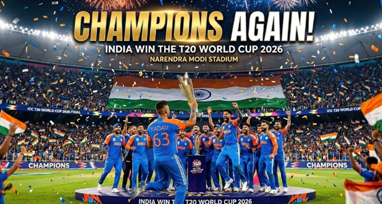 2026 టీ20 ప్రపంచ కప్ ఫైనల్ పోరులో భారత జట్టు చిరస్మరణీయ విజయాన్ని అందుకోవడంతో యావత్ భారతావని పులకించిపోయింది. గెలుపు ఖాయమైన క్షణం నుంచే అభిమానులు త్రివర్ణ పతాకాలను చేబూని రోడ్లపైకి వచ్చి తమ ఆనందాన్ని పంచుకున్నారు. ప్రధాన నగరాల్లోని కూడళ్లన్నీ అభిమానుల కేరింతలతో కిక్కిరిసిపోయాయి. టపాసుల మోతతో ఆకాశం వెలిగిపోతుంటే, క్రికెట్ ప్రేమికులు ఒకరికొకరు మిఠాయిలు తినిపించుకుంటూ ఈ చారిత్రాత్మక విజయాన్ని ఘనంగా జరుపుకున్నారు.