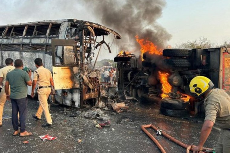 బస్సు కండిషన్ బాగాలేదని తెలిసినా లైసెన్స్ లేని డ్రైవర్తో బస్సు నడిపించి 14 మంది ప్రాణాలు తీసిన ప్రైవేట్ ట్రావెల్స్ యాజమాన్యంఏపీ మార్కాపురం బస్సు ప్రమాద ఘటనలో వెలుగులోకి వచ్చిన కీలక విషయాలు జగిత్యాల నుండి మార్కాపురం వెళ్లేలోగా బస్సు మూడుసార్లు ఆగిపోయిందని, యజమానికి ఫోన్ చేసి వేరే బస్సు పంపమని అడిగితే, ఇప్పటికిప్పుడు ఇంకో బస్సు ఎక్కడి నుండి వస్తుందని ఓనర్ బదులిచ్చాడని విచారణలో సమాధానం ఇచ్చిన డ్రైవర్ ఆగిపోయిన బస్సు స్టార్ట్ అయ్యాక క్లీనర్ బస్సు నడిపాడని, మార్కాపురం వద్ద ప్రమాదానికి గురైందని డ్రైవర్ వివరణ అయితే ఎనిమిది నెలల క్రితం బస్సు లీజుకు తీసుకుని, కండిషన్ సరిగ్గా లేకున్నా బస్సు నడిపిస్తున్నాడని, లైసెన్స్ ఉన్న డ్రైవర్ జీతం ఎక్కువగా అడుగుతాడని, లైసెన్స్ లేని డ్రైవర్తో బస్సు నడిపిస్తున్నాడని గుర్తించిన పోలీసులు అయితే ప్రమాద సమయంలో తానే బస్సు నడిపానని ఓనర్ చెప్పినా, సీసీటీవీ ఫుటేజ్ ఆధారంగా బస్సు క్లీనర్ నడిపినట్లు పోలీసుల గుర్తింపుయర్రగొండపాలెంలో బస్సు పాడైనందున నడిపేందుకు వెళ్లి మార్కాపురం వద్దే వేచి ఉన్నాడని, ఓనర్ ఉన్న చోటు వరకు క్లీనర్ నడుపుతుండగా ప్రమాదం జరిగినట్లు తేల్చిన పోలీసులు అయితే లైసెన్స్ లేని డ్రైవర్ బస్సు నడపడంతో, ఇన్సూరెన్స్ డబ్బులు కూడా రావని ఇన్సూరెన్స్ సంస్థలు చెప్తున్నాయని, ఉన్నతాధికారులు జోక్యం చేసుకుని ఇన్సూరెన్స్ డబ్బులు వచ్చేలా చేయాలని విజ్ఞప్తి చేస్తున్న బాధితులు