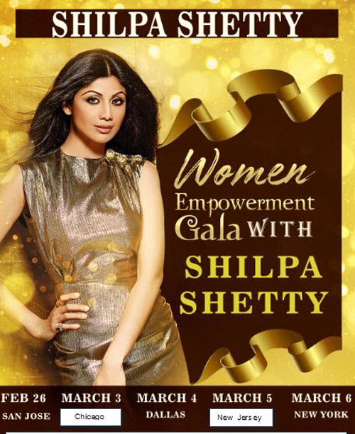 Mumbai Feb 13 : Bollywood actress and entrepreneur Shilpa Shetty Kundra will attend a women's empowerment gala in the US.Shilpa on Monday took to Twitter, where she shared a poster of the event and also the tour dates. The actress will be starting her tour from Febuary 26, and it will end on March 26.