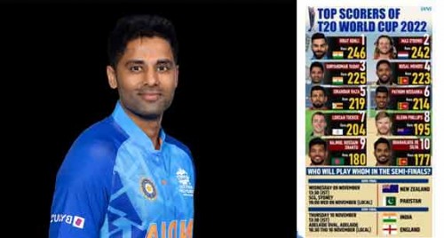 With 225 runs in five innings at an average of 75, Suryakumar is now the third highest run-getter in the tournament, behind team-mate and table-topper Virat Kohli (246 runs) and Netherlands' Max O'Dowd.