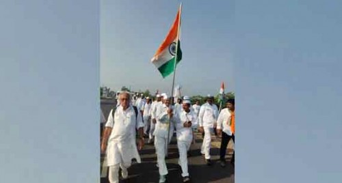 'KK' as Pandey was popularly known to the partymen, was holding the National Tricolour and walking in the BJY alongside Digvijaya Singh and others when he complained of chest pain, and passed the flag to another worker nearby.