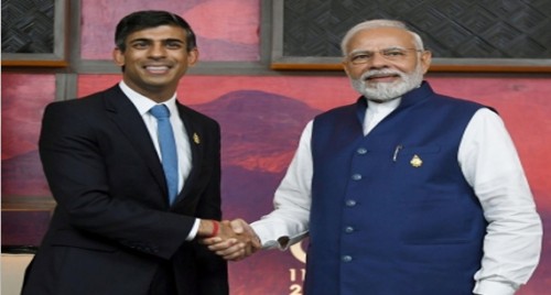 New Delhi, Nov 16 (IANS) Prime Minister Narendra Modi on Wednesday met his UK counterpart Rishi Sunak on the sidelines of the G20 summit in Bali, where the two leaders expressed satisfaction at the state of the wide-ranging India-UK Comprehensive Strategic Partnership and progress on the Roadmap 2030 for Future Relations.