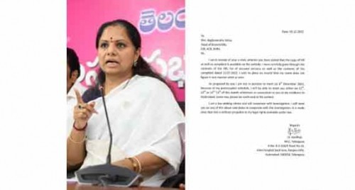 Kavitha assured her cooperation in the investigation. "I am a law abiding citizen and will cooperate with the investigation, I will meet you on any of the above said dates to cooperate with the investigation. It is made clear that this is without prejudice to my legal rights available under law," she added.