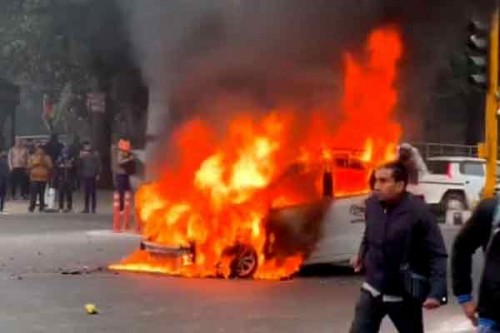 According to a senior Delhi Fire Service official, after receiving a call regarding a fire in a Hyundai Accent car at ITO fire tenders were rushed to the spot.