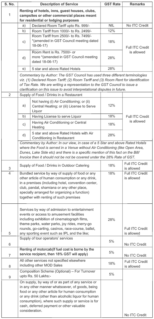 HOTEL INDUSTRY According to the law on GST, it appears that all services in relation to hotels and restaurants would be subject to levy of GST as the same is to be treated as ‘supply’.