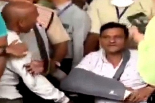 He sustained grievous injuries in his arms and legs, including fracture, and was rushed by locals to the nearby Hinduja Hospital and discharged a few hours later after treatment, with an arm in a sling.