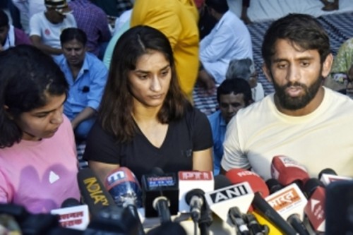 Some of India's top wrestlers, including Olympic medallists Punia and Sakshi Malik, along with Asian and Commonwealth Games medallist Vinesh Phogat are protesting at the Jantar Mantar, seeking action against Singh for alleged sexual harassment of women grapplers.