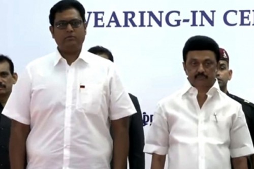 Chennai, May 11 (IANS) T.R.B. Rajaa, the Mannargudi MLA and son of senior DMK leader, T.R. Baalu was sworn-in as a minister in the M.K. Stalin cabinet on Thursday.
