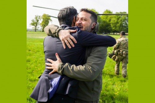 London, May 15 (IANS) Ukrainian President Volodymyr Zelensky arrived in the UK on Monday and is scheduled to hold a meeting with British Prime Minister Rishi Sunak later in the day.