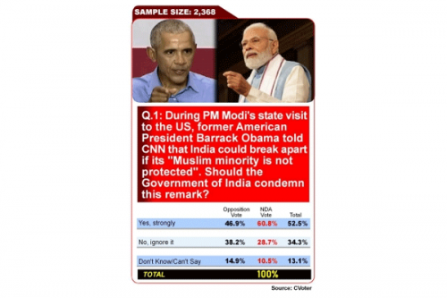 More than five out of every 10 respondents are of the opinion that the Indian government must strongly condemn the remarks made by Obama.