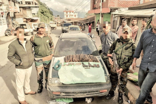 The sources said that acting upon specific intelligence input regarding attempts to smuggle weapons and explosives and other war-like stores to Manipur via Nagaland, a joint operation of Assam Rifles and Nagaland police was launched on Monday evening and the arms, ammunition, explosives were seized.