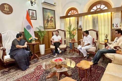 The Congress leader who is on a two day visit to violence hit Manipur, met the Governor Anusuiya Uikey at the Raj Bhavan on Friday. He was accompanied by Congress General Secretary K.C. Venugopal and AICC in-charge of several northeastern states Ajoy Kumar.