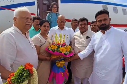 State Ministers M.B. Patil and Laxmi Hebbalkar received the NCP supremo at the airport.