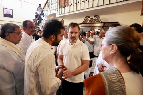 Bengaluru, July 18 (IANS) Former Congress Presidents Sonia Gandhi and Rahul Gandhi paid last respects to Kerala's former Chief Minister Oommen Chandy on Tuesday in Bengaluru.