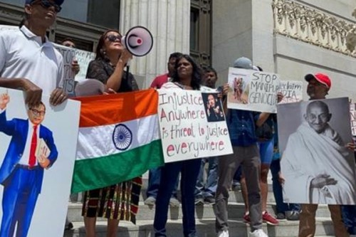 In Boston, Massachusetts, several Indian-Americans and allies came together to express solidarity with the victims and urging President Joe Biden's administration to intervene and call on Prime Minister Narendra Modi to halt the escalating violence in Manipur.