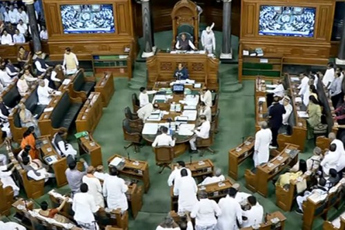 Speaker Om Birla, who allowed Question Hour proceedings, urged the protesting members to maintain the dignity of the House and resume their seats.