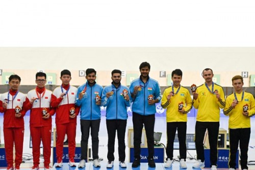 Chengdu (China), July 31 (IANS) India surpassed the shooting men's 10m air rifle team world record on Monday and won a gold medal at the 31st FISU World University Games, here.