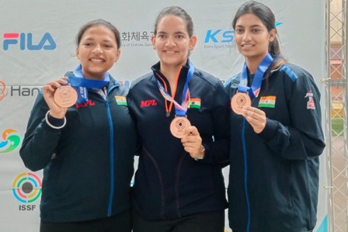The Indian Women's 50m Rifle 3-Position Team bagged the gold medal on Tuesday with a brilliant performance to claim the gold medal overcoming challenges from China. The men's 10m Air Pistol team of Arjun Cheema, Varun Tomar and Anmol Jain bagged the bronze medal.