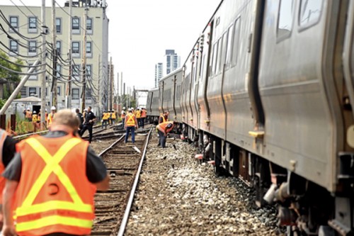 A Long Island Rail Road train was heading toward Hempstead when it derailed east of Jamaica Station at 175th Street and 95th Avenue, in the city's Queens borough, at around 11.12 a.m. on Thursday, according to a Metropolitan Transportation Authority (MTA) official.