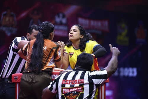 Kiraak's Madhura came on yet again and pinned Ludhiana's Aparna Roshith via top roll to continue her dominance in 65kg category. Using challenger round to her advantage, Madhura again shifted momentum back to Kiraak's corner, and continued her unbeaten streak in Pro Panja League. Ludhiana sent Sachin Bhadoria against Kiraak's Jagadish Baruah for 100kg bout. The latter completely dominated the bout to get a clean sweep win and earned 5-0 victory, helping Kiraak Hyderabad pick 18-10 win, and climb to top of the table.