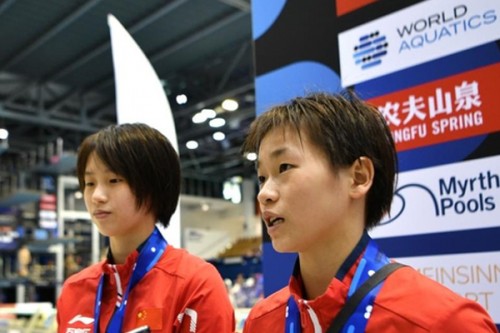 Chinese pair Chen Yuxi and Quan Hongchan led after each round in the women's synchro 10m, the first event of the tournament. The two-time world champions executed three dives that earned more than 80 points apiece to inflate their winning 362.76-point tally, 74.76 points ahead of runners-up Caeli McKay and Kate Miller of Canada, reports Xinhua.