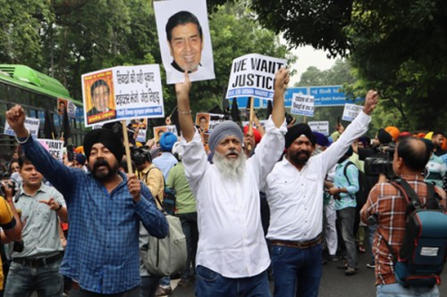 New Delhi, Aug 5 (IANS) Delhi Sikh Gurdwara Management Committee (DSGMC) members on Saturday staged a protest outside Rouse Avenue Court, voicing their opposition against Congress leader Jagdish Tytler getting an anticipatory bail in the 1984 anti-Sikh riots case.